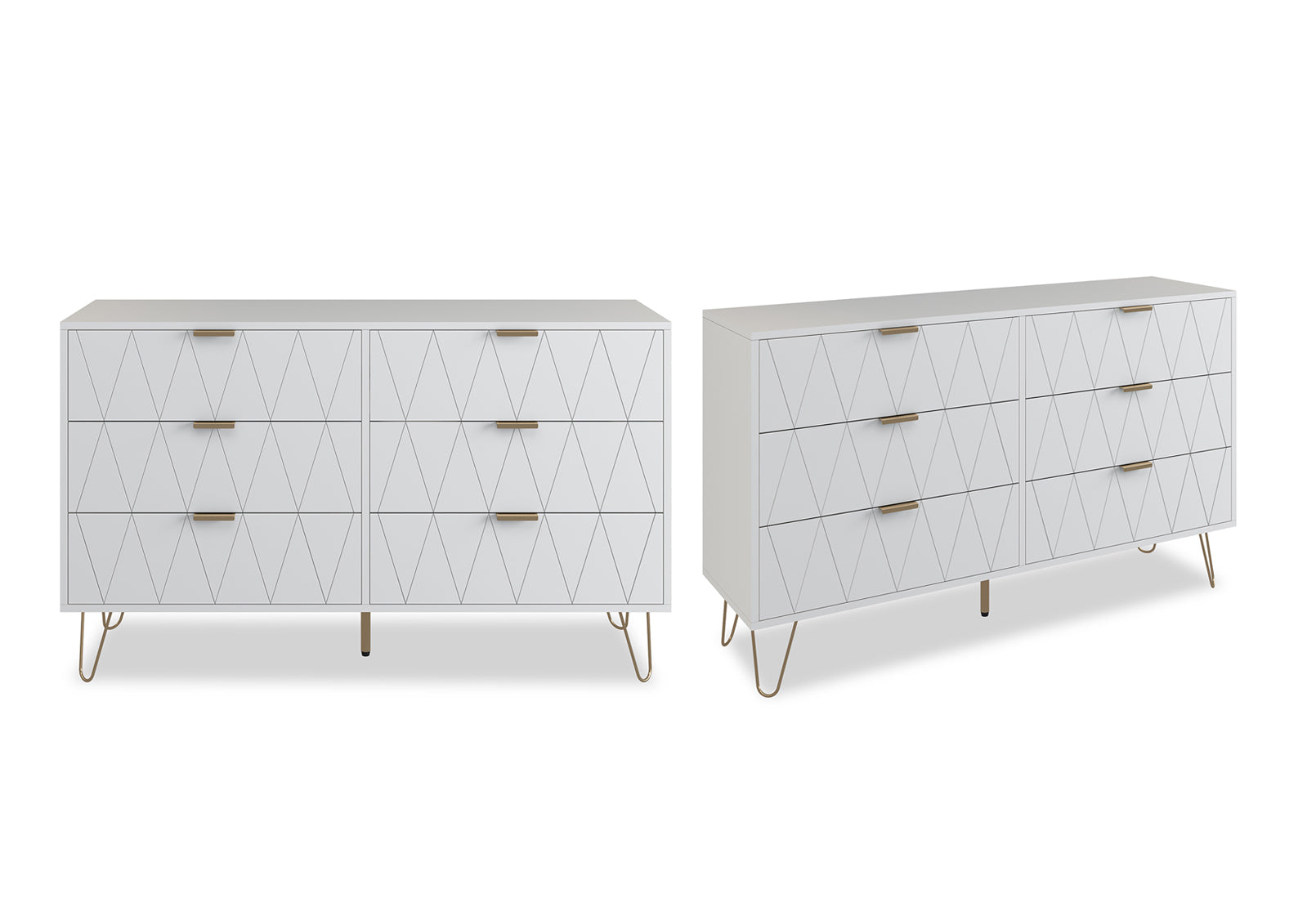 Made from high-quality MDF with a smooth painted finish, this dresser is built to last. The gold-tone metal handles and legs bring a sophisticated touch.