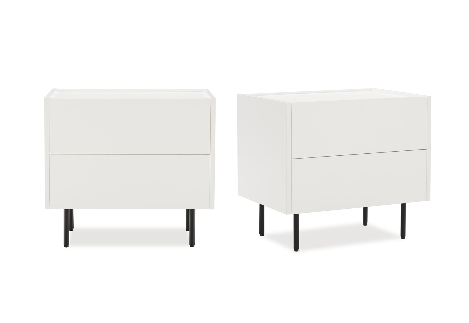 Double the impact with the Emerson 2pce Bedside Bundle: a pair of matching bedside tables designed to elevate both style and function. With a clean white finish, slim steel legs, and smooth-glide drawers, each piece offers practical storage for your nighttime essentials while adding a modern edge to your bedroom. Compact and versatile, this set is the perfect upgrade for creating a cohesive, clutter-free space.