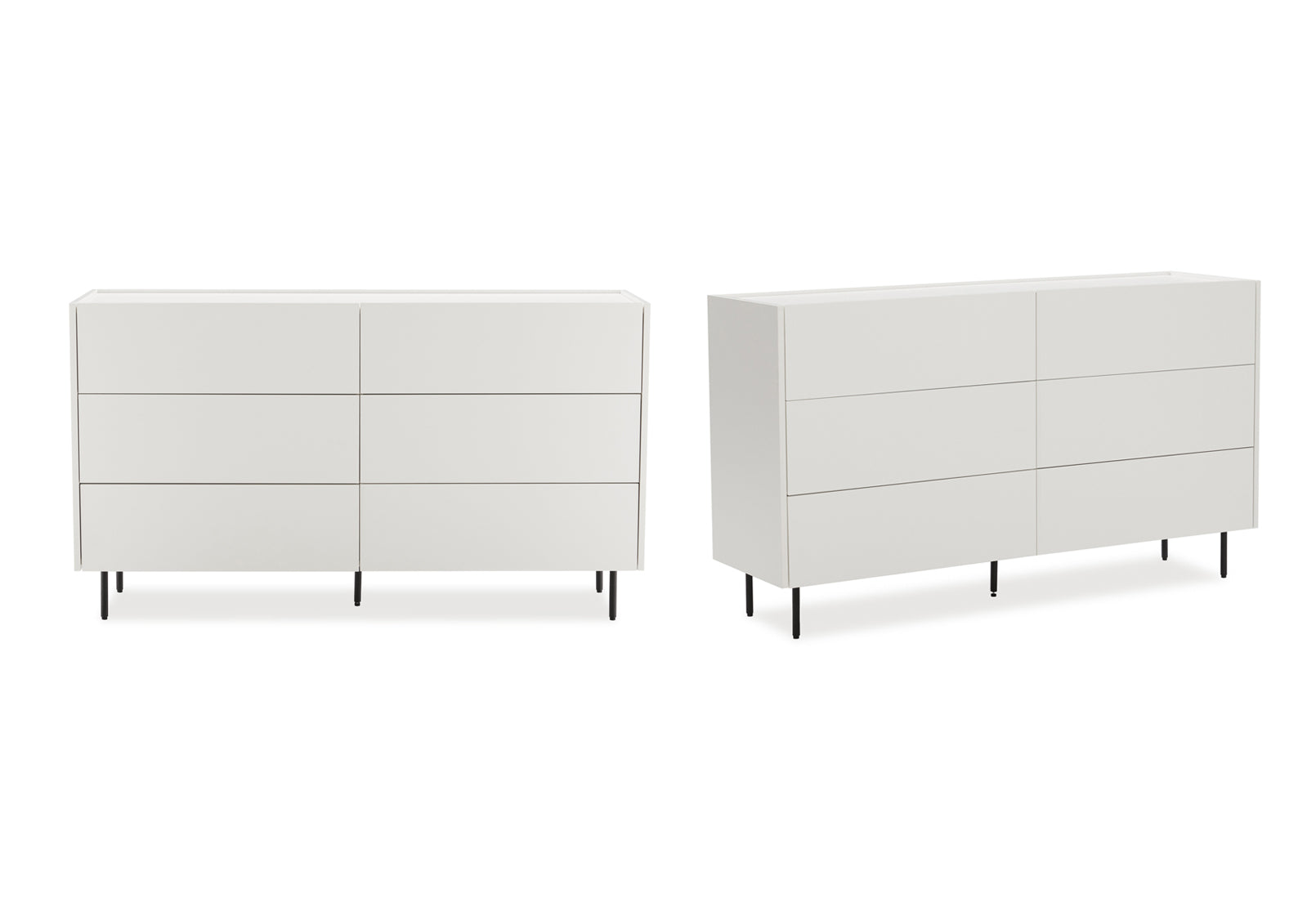 Upgrade your bedroom with the Emerson 2pce Dresser Bundle: a pair of six-drawer dressers designed to balance clean lines with everyday practicality. Finished in crisp white and elevated by slim steel legs, each unit offers generous storage in a sleek, low-profile silhouette. Whether you're styling a minimalist retreat or maximising space in a busy household, this bundle delivers smart organisation with a refined, contemporary edge.